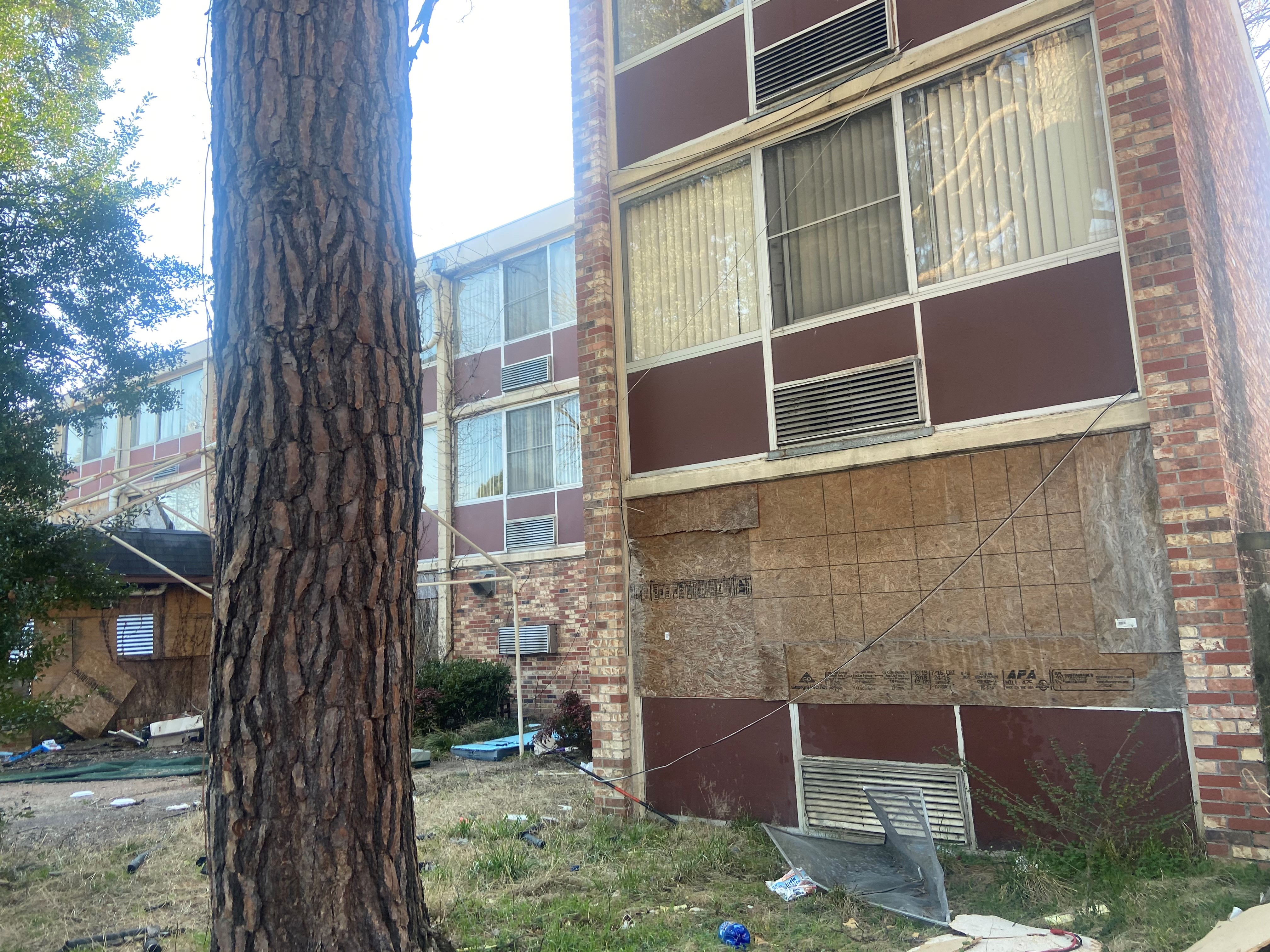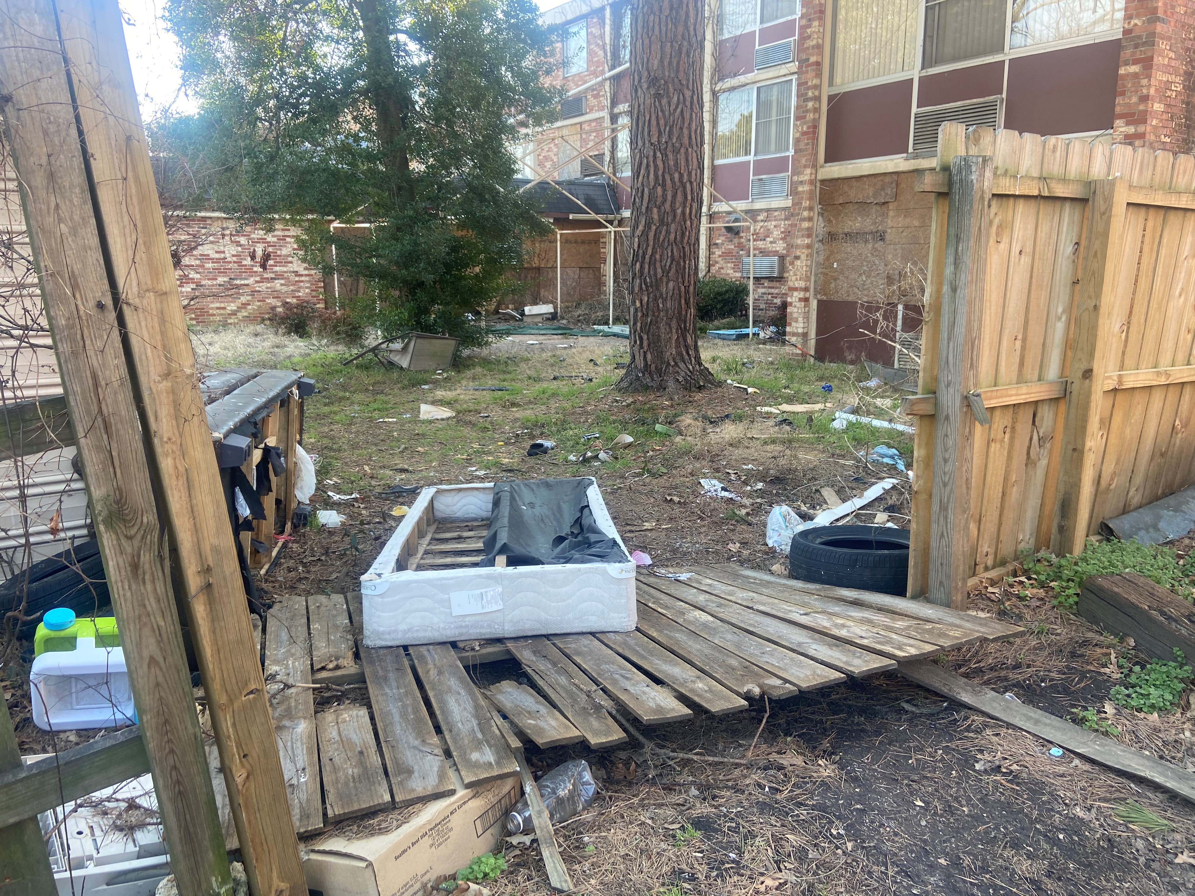 Monday, we saw that several exteriors doors had been opened and there were mattresses, trash and other items all over the outside of the building.