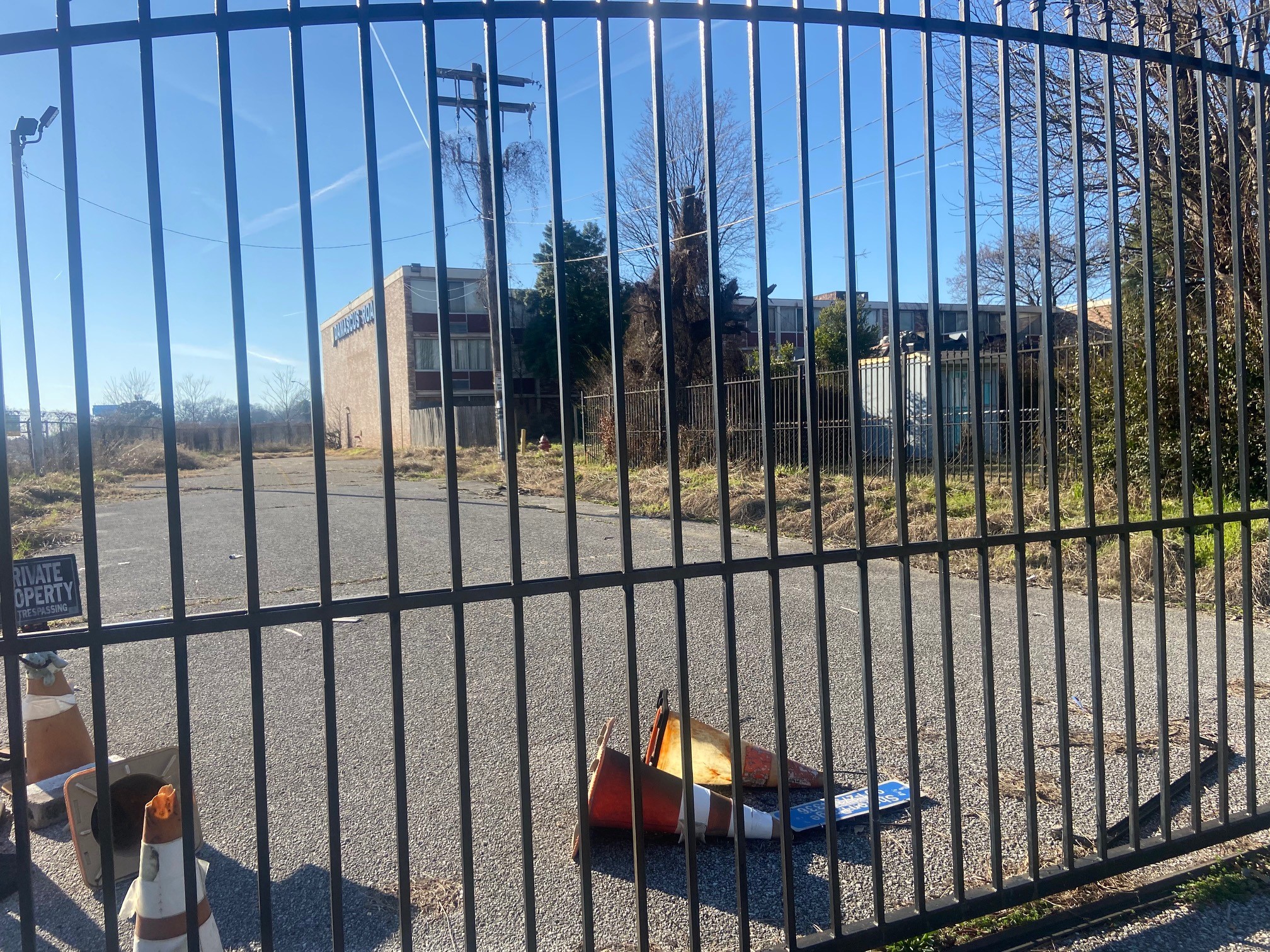 While there is a locked gate at the entrance of the boarded-up building, portions of a wooden fence along the perimeter have fallen down, giving anyone access to the building.