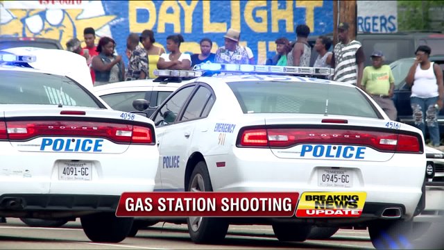 Police immediately said they had not located the gunman, but the black car remained at the gas station after the shots were fired.