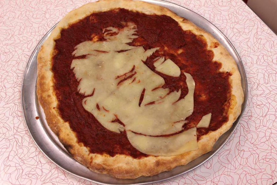 Joe’s World Famous Pizzeria decided a Donald Trump pie was the way to go. From the hair to the laugh lines, this cheesy rendering is masterfully done. Credit goes to owner Joe Carlucci and Athens High student and artist Morgan Griess.
