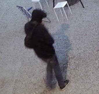 Surveillance video shows the man wearing a black hooded jacket, backpack and black New Balance shoes enter the business and walk through several areas.