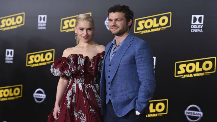 Emilia Clarke, left, and Alden Ehrenreich arrive at the premiere of “Solo: A Star Wars Story” at El Capitan Theatre on Thursday, May 10, 2018, in Los Angeles. (Photo by Jordan Strauss/Invision/AP)
