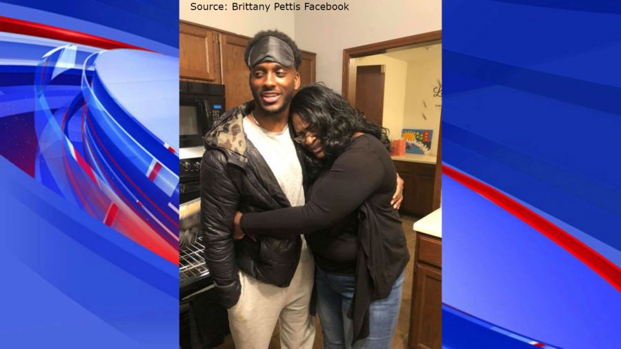 Brittany Pettis shared a Facebook video of her brother, Grant Jackson, surprising their mother, Gwen Jackson, by coming home after serving nearly two years in the Air Force in Japan.