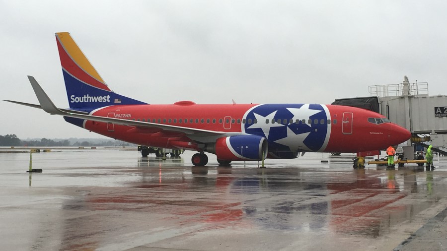 The unique plane features the Tennessee state flag on the body of the aircraft and the Southwest logo at the back.