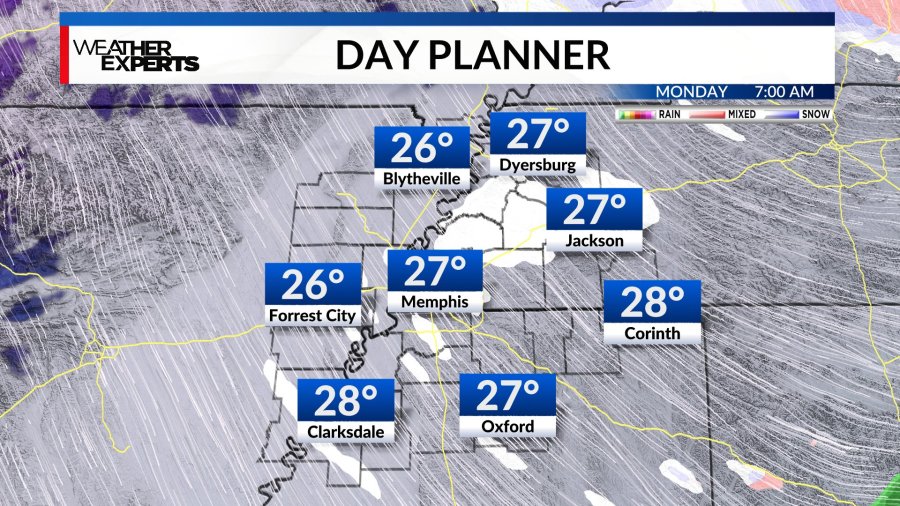 MEMPHIS, Tenn. — Light snow has made its way to the Mid-South with small snow flurries melting as they hit the ground Monday morning.