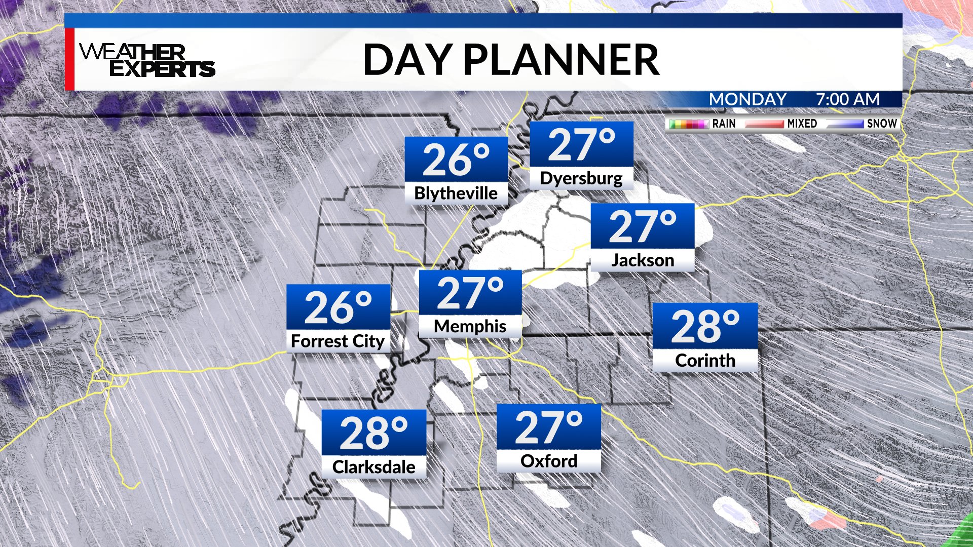 MEMPHIS, Tenn. — Light snow has made its way to the Mid-South with small snow flurries melting as they hit the ground Monday morning.
