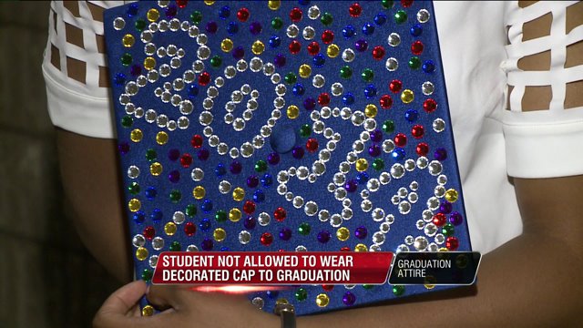 Student not allowed to wear decorated graduation cap