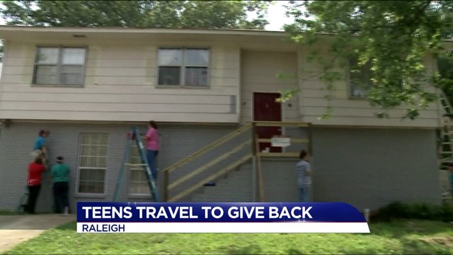 Teens are making improvements to homes, such as a Raleigh residence they were working on Wednesday.