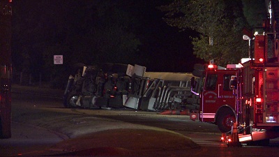 Tanker Truck Overturns On Sycamore View