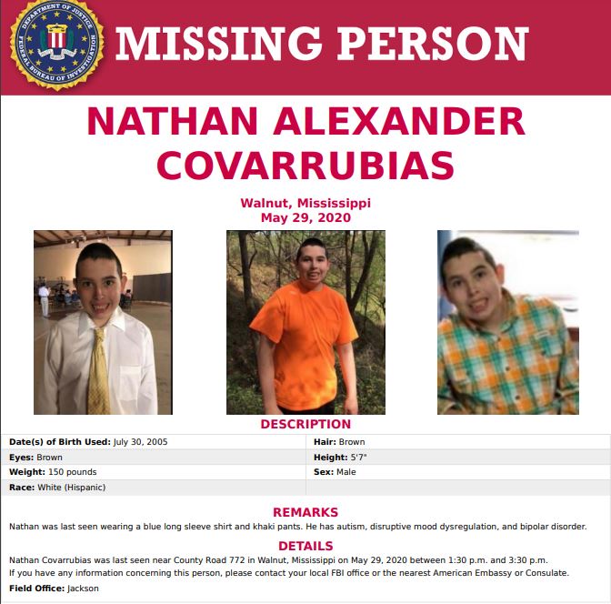 If you have seen Nathan Covarrubias or know where he is, you’re asked to contact the Alcorn County Sheriff’s Department.