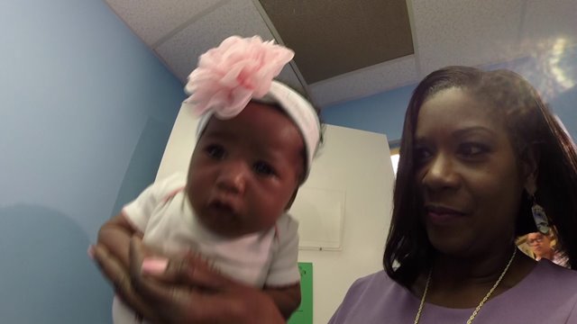 Six-week-old baby Farrah’s trip to the doctor’s office made her fussy recently. Her mother said she’s a good baby and usually only cries when she’s hungry, but all the dressing and undressing at the pediatrician’s office upsets her — Not to mention the blood the nurse draws from the heel of her foot.