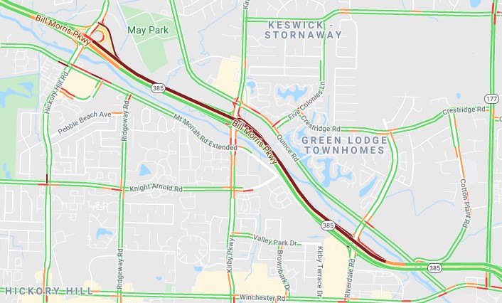 Traffic was backed up on 385 from Ridgeway to beyond Riverdale, according to TDOT.