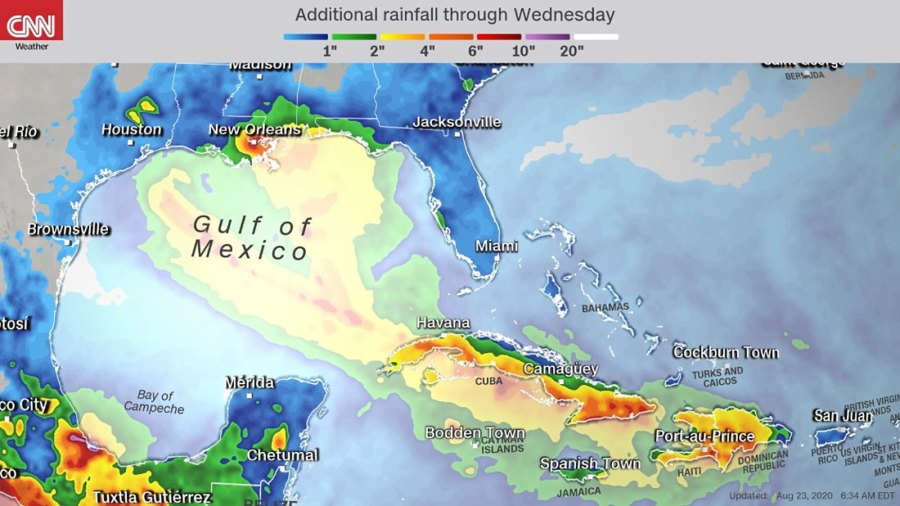 Then there’s Tropical Storm Laura, which is also expected to strengthen to a hurricane before it makes landfall on the US mainland late Wednesday or early Thursday. Laura will also make landfall on or near the Louisiana coast.
