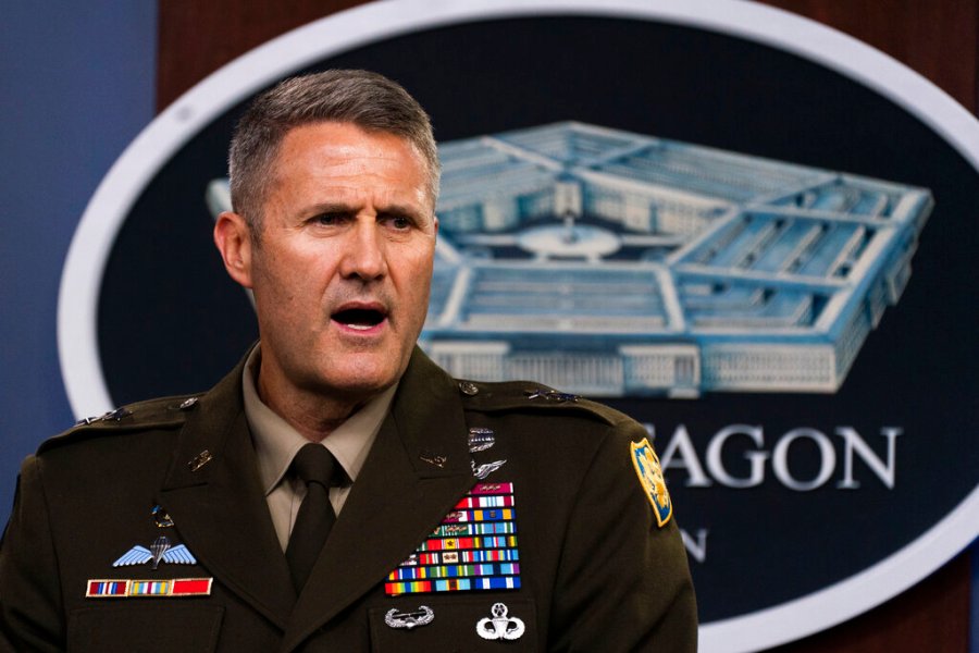 U.S. Army Maj. Gen. William Taylor, Joint Staff Operations, speaks about the situation in Afghanistan during a briefing at the Pentagon in Washington, Friday, Aug. 27, 2021. (AP Photo/Manuel Balce Ceneta)