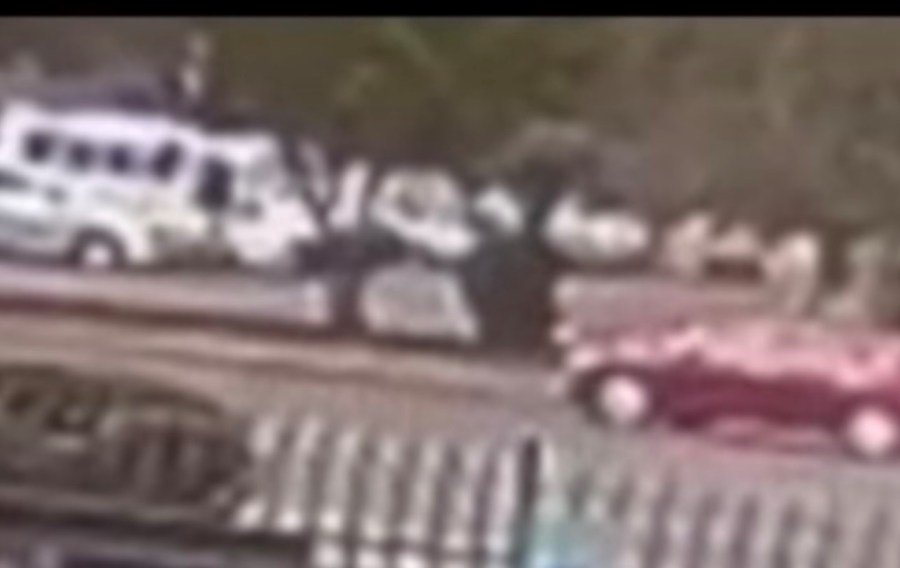 You can also see the driver of the red car backing up his vehicle to get away from the gunfire.