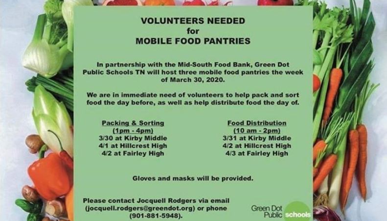 Rodgers and Green Dot Tennessee already do a monthly food pantry. This week, they will add to that partnering with the Mid-South Food Bank for a mobile pantry.