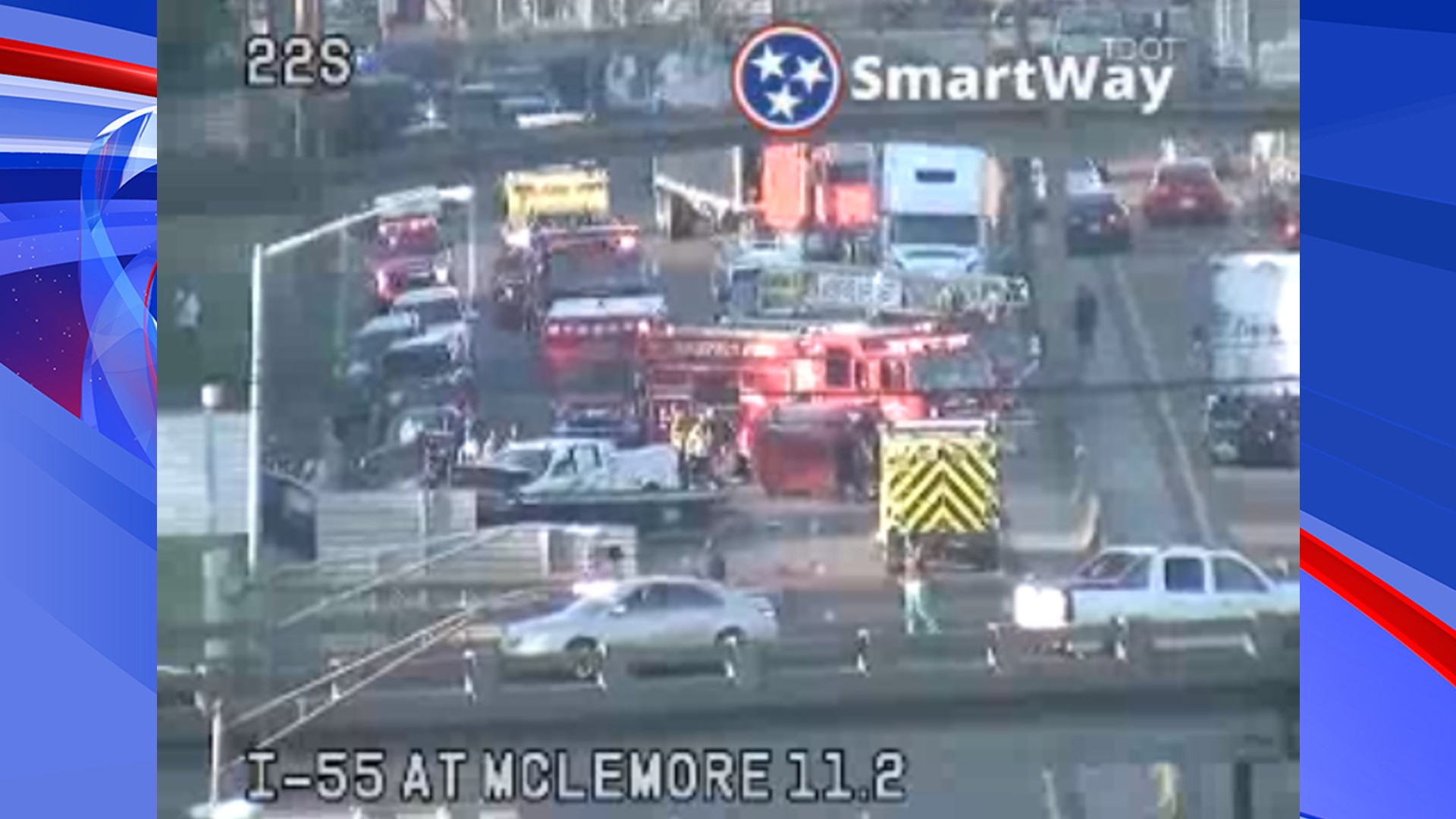 MEMPHIS, Tenn. — A multiple-vehicle wreck Monday evening on Interstate 55 in Memphis shut down traffic for miles, even stretching into Arkansas.