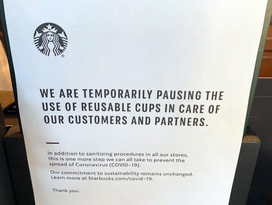 Starbucks declined to comment about how long it would suspend the bring-your-own-mug program. The Seattle-based coffee chain has given customers discounts for using their own cups for new purchases since 1985, according to the company’s website.