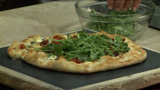 Blue cheese and roasted tomato galette with arugula salad (serves six as side dish or appetizer)