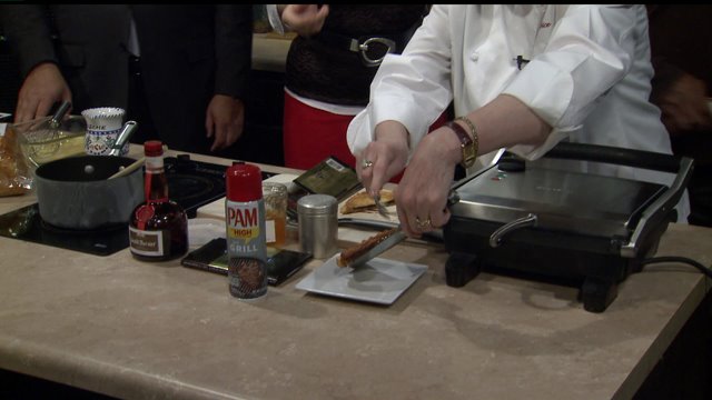 When the sandwiches are done, remove to a plate, drizzle with the sauce and sprinkle with the powdered sugar. Serves four.