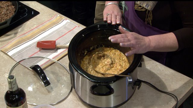 Step 2: At the same time, put pimento cheese in slow cooker on low.