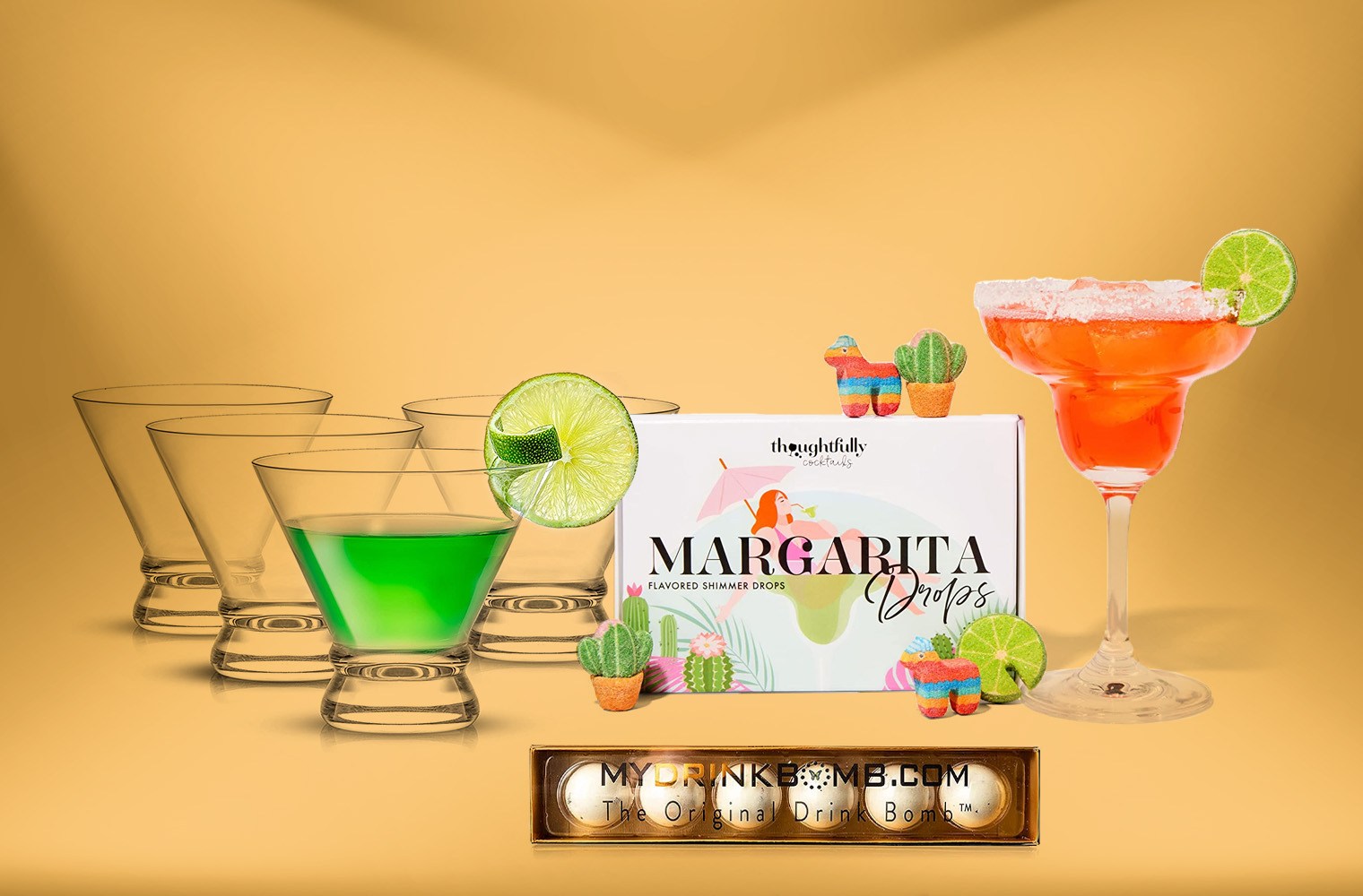 In this article: My Drink Bomb Margarita Cocktail Bombs, Thoughtfully Cocktails 3D-printed Margarita Drops and JoyJolt Four-piece Afina Martini Glass Set.