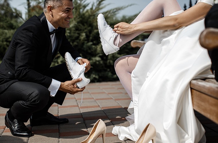You might be concerned about what makes footwear bridal and whether sneakers and flats are suitable. Luckily, it’s the 21st century, and you can wear anything you want on your wedding day, so there’s no need for your shoes to be particularly “bridal.” They can look however you want them to.