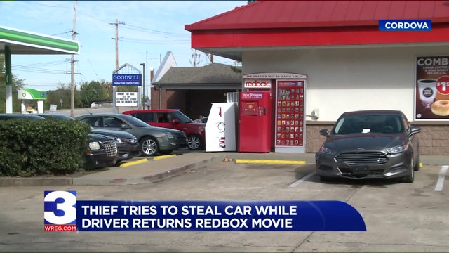 Thief tries to steal car while driver returns Redbox …