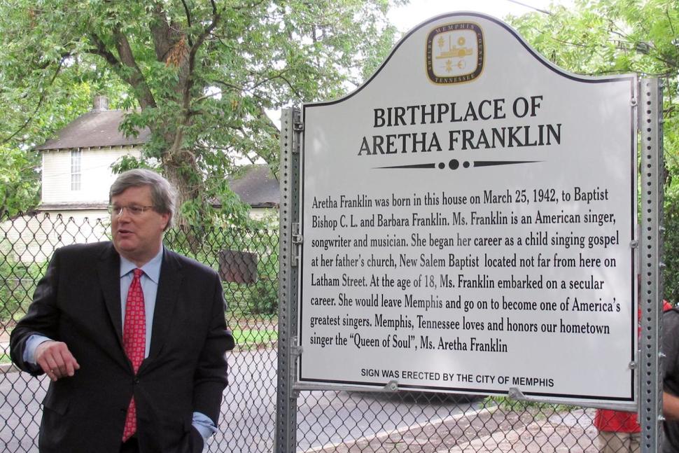 Plaque placed at Aretha Franklin’s childhood home in Memphis