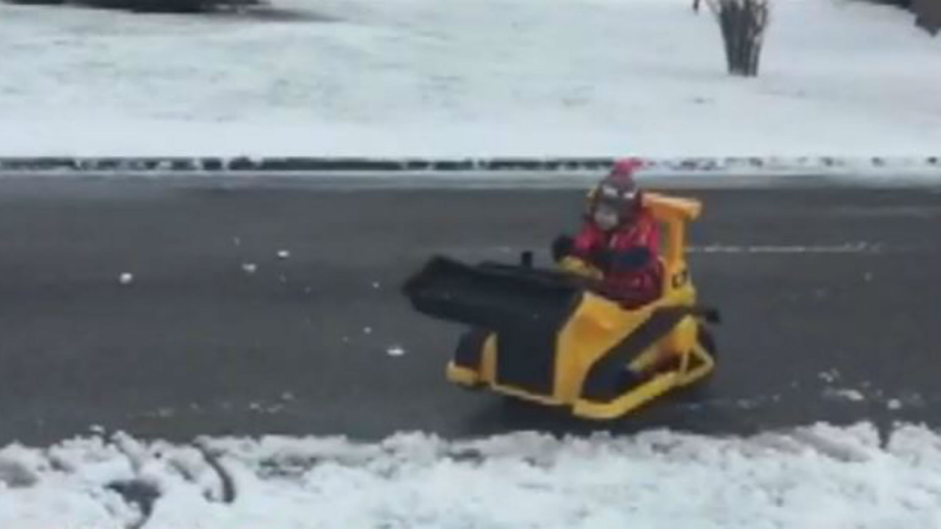 Tennessee toddler helps plow snow with mini bulldozer