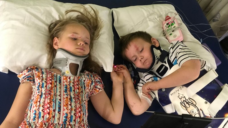Young siblings reunite 3 weeks after surviving car crash …
