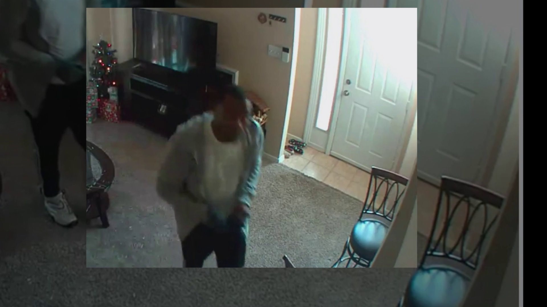 Woman watches from phone as thief takes presents under …