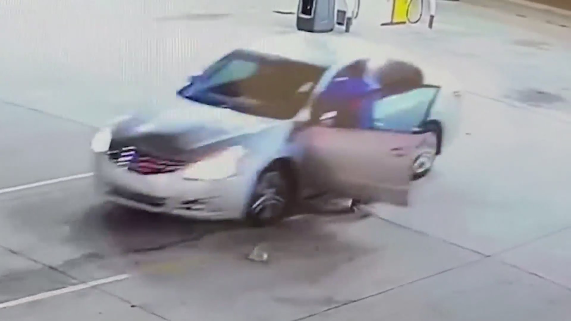 Surveillance video shows man trying to stop car thief