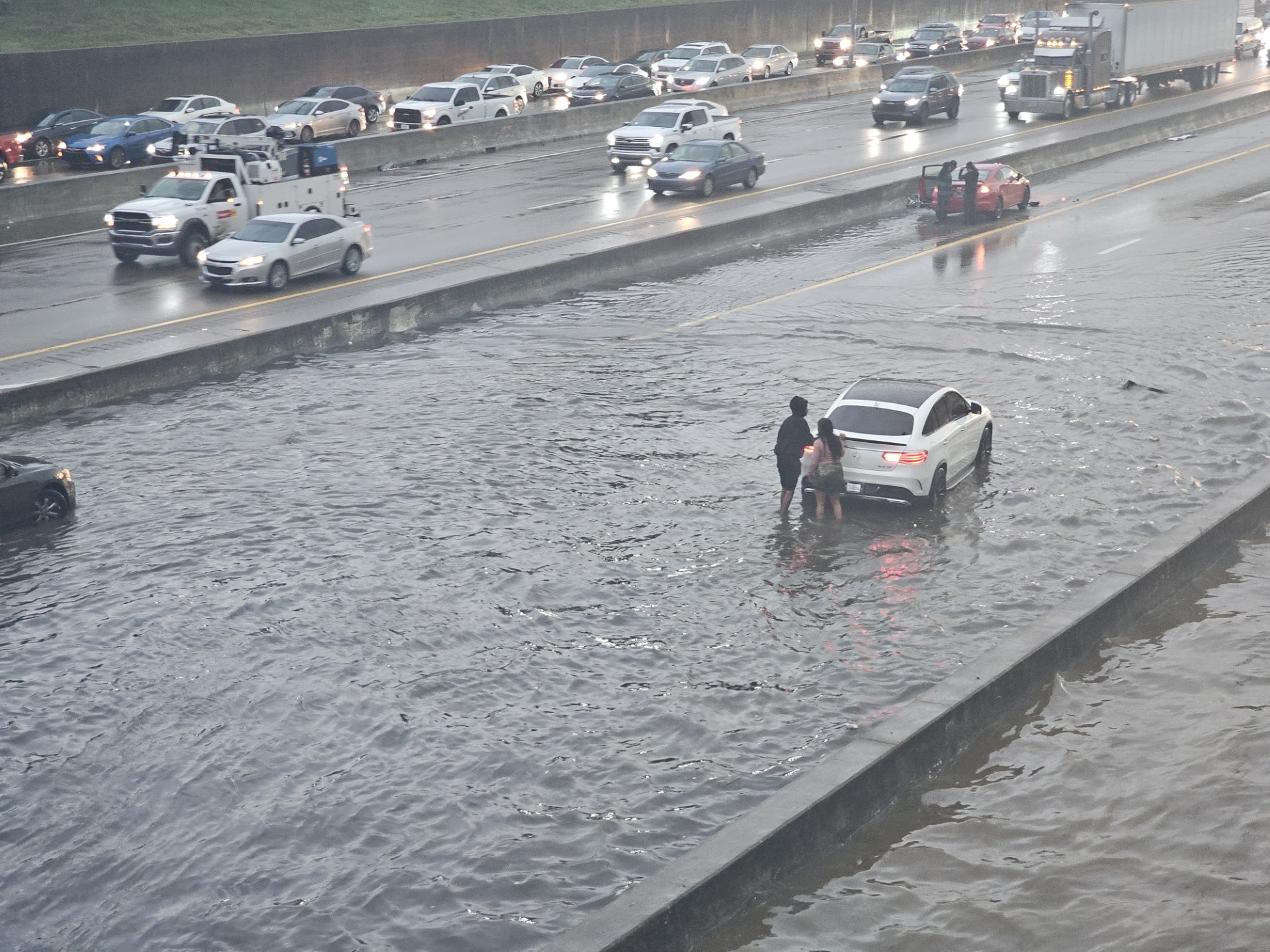WREG crews captured photos of the massive flooding on Interstate 240 under the Jefferson overpass, causing traffic delays. Drivers were seen attempting to push their vehicles through the flooding and still trying to pass through.