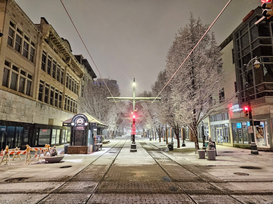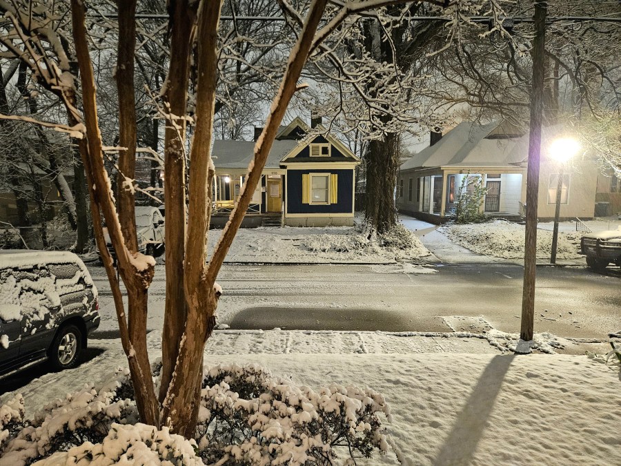 At 4 a.m., city streets were slushy but passable. A snowplow was seen working Union Avenue. Corie Ventura reported that interstates were moving.