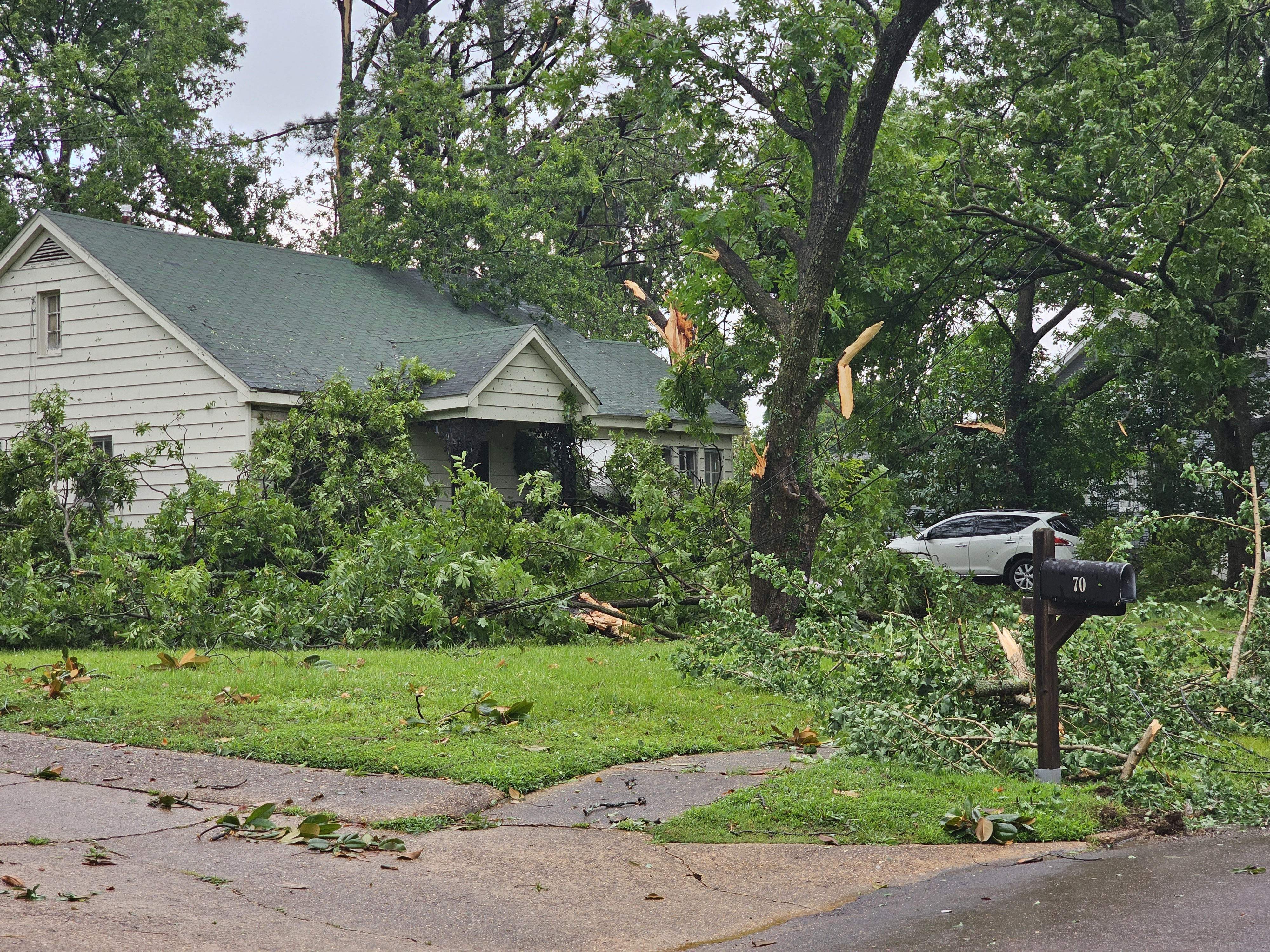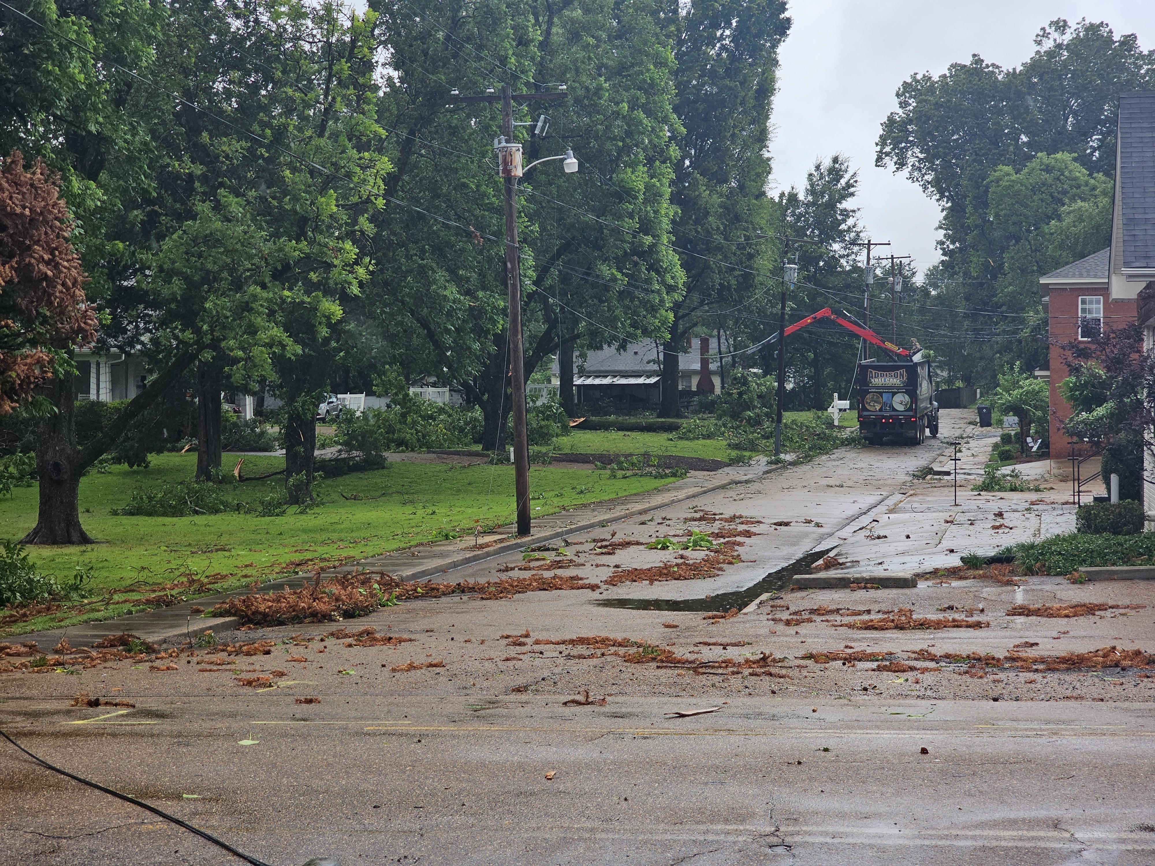 Downed powerlines, broken tree limbs, and debris covered the neighborhood surrounding West Commerce Street in Hernando.