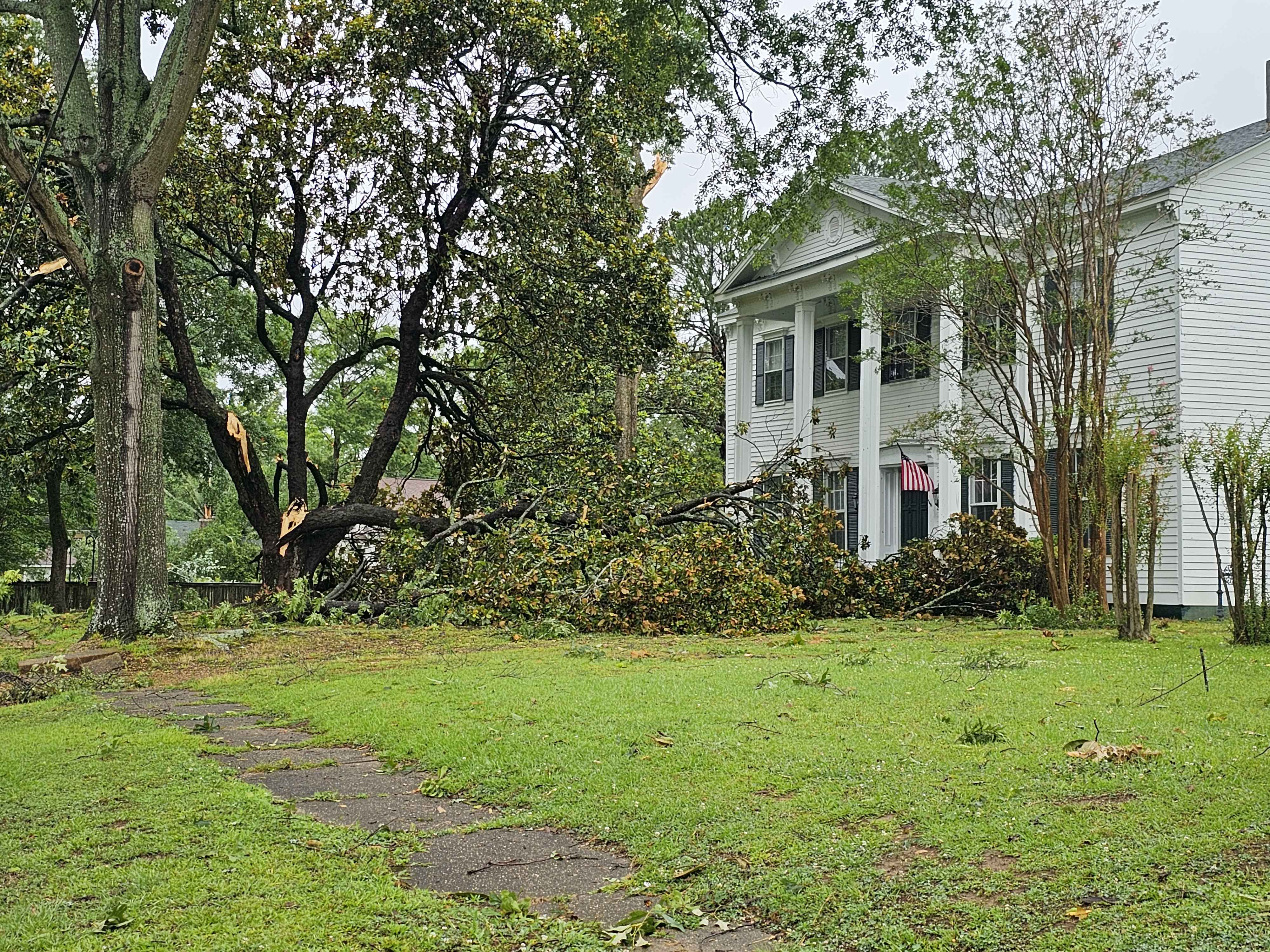 Johnson said power lines were down and trees were blocking many roads. He asked people to avoid the area between court square and the interstate.